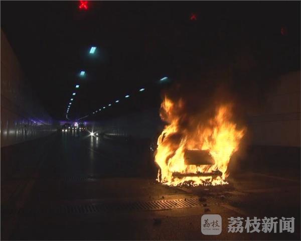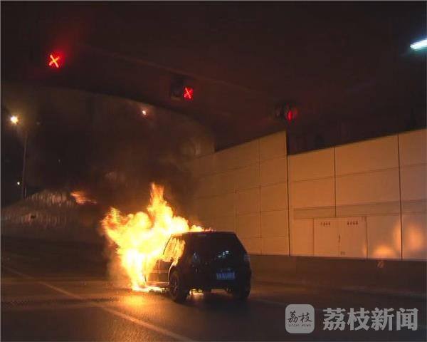 4月24日深夜11:30,在南京龙蟠中路西安门隧道由南向北方向出口处,一辆轿车自燃。路过司机报警,逸仙桥消防中队三辆消防车进入隧道,车辆纷纷给消防车让行。消防官兵出两只水枪将明火扑灭,因为火势较大轿车完全烧毁,但是自始至终不见司机踪迹。