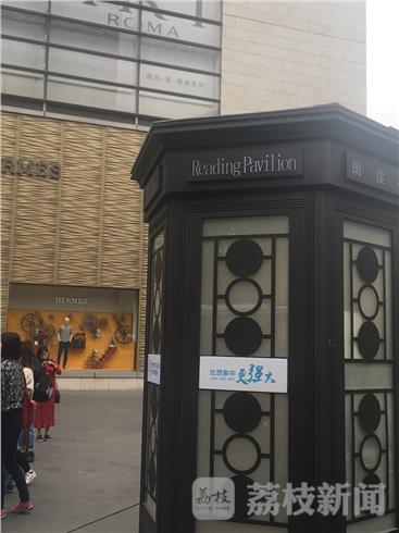 这座稍显古朴的朗读亭位于新街口德基广场,高有3米,占地3~4平方,乍看之下有点像欧洲的电话亭,上面贴着朗读亭的字样,里面有两台摄影机以及一套完整的录音设备,市民只要在门口登记上个人信息,带着自己喜爱的书或者文件,就可以进入阅读。