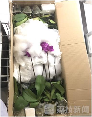 4月20日,江苏南京出入境检验检疫局工作人员在从台北直飞南京航班的旅客托运行李中,查获一批蝴蝶兰,共计3箱,48株。据托运该行李的旅客描述,这批蝴蝶兰是用于 “第十九届中国国际花卉园艺展览”上的展台布置,并出示了 “行政院农业委员会动植物防疫检验局输出植物检疫证明书”。但由于未能出示中华人民共和国出入境检验检疫机构颁发的相关审批手续。现场工作人员根据检验检疫相关法律法规,对这批蝴蝶兰做暂扣并做进一步处理。
