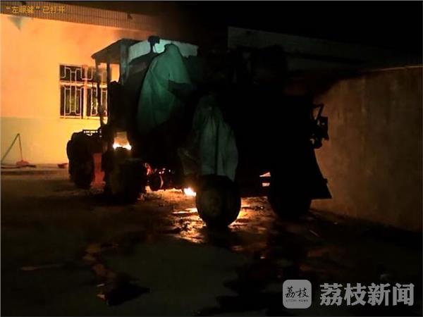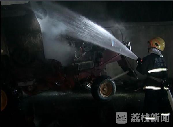 昨天(5月2日)凌晨1点多钟,淮安市涟水县岔庙镇桑庄村张女士报警,称他家停放着门前的收割机突发大火,涟水县消防中队接到报警后立即赶赴现场进行扑救。