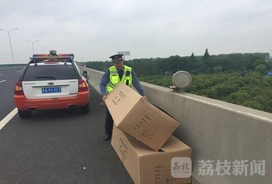 驾驶员开车途中因操作不慎,造成货物掉落丢失,如果不及时处置,可能危及其他车辆安全。5月3日,江苏高速沿江支队机动大队交通执法人员巡查时,帮助一马大哈司机寻回掉落货物,挽回了驾驶员的财产损失。
