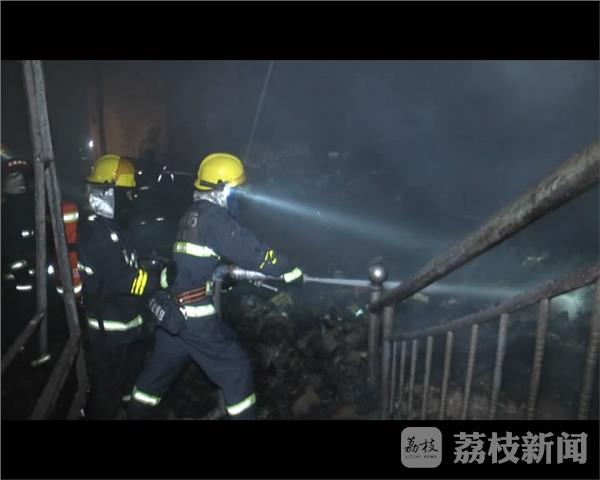 据了解,整个厂房火灾直到4日凌晨3时才被全部扑灭。荔枝新闻记者赶到火灾现场时,当地消防队分多组对起火的车间进行扑救,因为车间堆放的都是易燃物品纸张和泡沫,火势燃烧较大,大火已经将房屋顶烧塌方,钢结构的横梁也发生变形,消防官兵冒着生命危险在车间扑救,大火发生后也将厂老板住家房屋的堂屋木门烧毁,家中一片狼藉。据了解,当晚工人9点下班,之后将车间电源关闭。