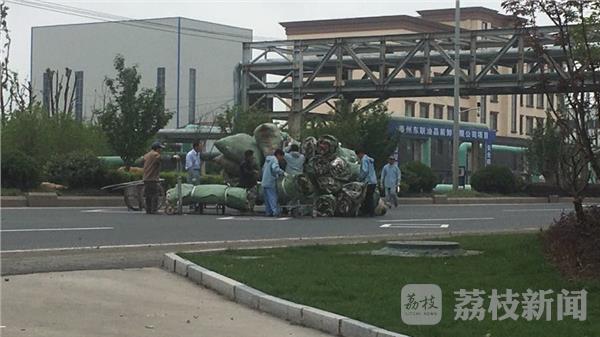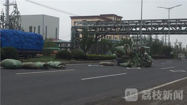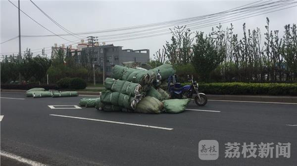 事发在泰州市长江大道沿江段,当时满载编织袋的三轮车由东向西行驶,准备在一个岔口转弯时,由于货物装的太高,重力失衡一下子侧翻在路中央,幸运的是当时无过往车辆。 发生侧翻后,驾驶员立即拨打电话,一会功夫便来了几辆三轮车,同时附近工厂工人见状也过来帮忙,将编织袋泊载其他车上运走。