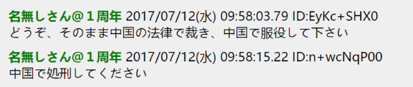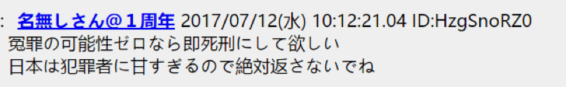 (“如果不是冤罪的话,请立即处以死刑。日本对罪犯太过宽容,绝对不能引渡他们”)