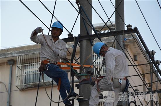 近日,盐城全市持续晴热高温天气为主,大丰最高气温达39℃!,全区空调用电量剧增,用电负荷猛升。线路设备超荷运行,导致故障抢修频繁。供电公司所有抢修队克服困难,战高温、斗酷暑,快速投入抢修,及时恢复居民供电。顶着室外近40度的高温吧保证全区居民免遭停电之苦。