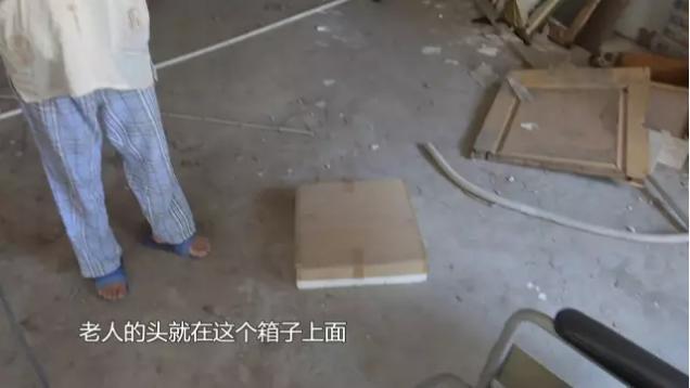 养老院负责人何熙平:老人当时摔在这个位置,老人的头就在这个箱子上面,事情发生后,家属立刻过来很气愤,后来我们帮老人洗澡,老人情绪很激动,又打又骂,但是身上没有伤。