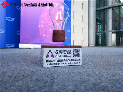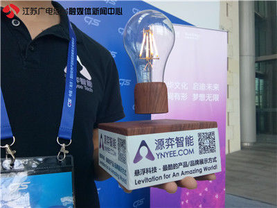 全球第一款不插电的磁悬浮无线充电灯也亮相展会, 团队用超导悬浮实现了电磁悬浮无法实现的重型下悬浮、 侧悬浮、运动载人上悬浮,创造性地用于广告、展览、游 乐行业,帮助商家吸引消费者的注意力。