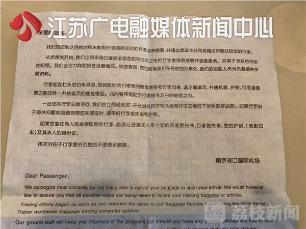 航班降落行李不见 被找回后部分东西丢失