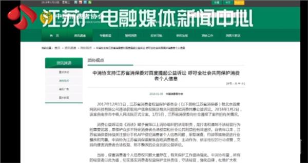 继不久前百度通过官方微博发表声明,否认旗下2款手机app泄露个人信息后,昨天(1月9日),中国消费者协会正式发表文章,对江苏消保委公益诉讼表示支持。