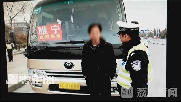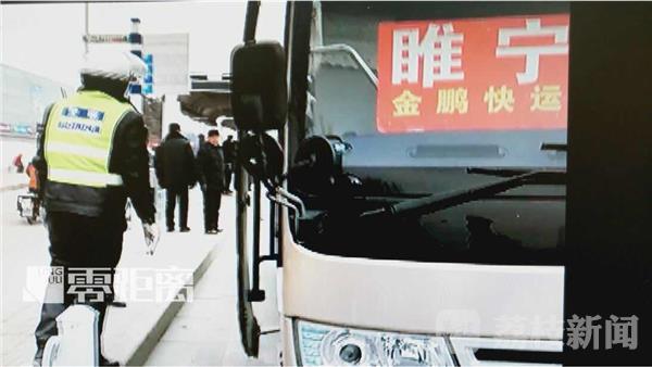 2月1日下午3点多钟,民警在徐州迎宾路执勤时,发现这辆大客车在公交站台下客,客车的前挡风玻璃下放着“睢宁”字样线路板,民警立即上前对该车进行检查。