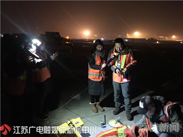 江苏台记者毕然:“此时此刻,室外的温度只有零下十度,在这样空旷而寒冷的飞机跑道上检修灯光,会是怎样的感觉呢?”