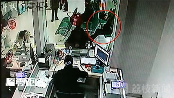 银行监控画面显示,当天早上10点多,杨某来到淮安区金地广场某银行柜台取钱,而此时在银行大厅,一名戴着口罩的男子正坐在椅子上,观察来往的人群。