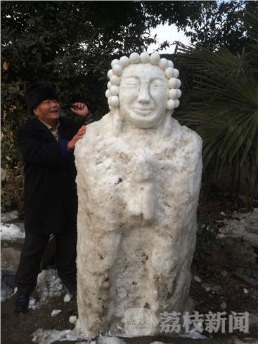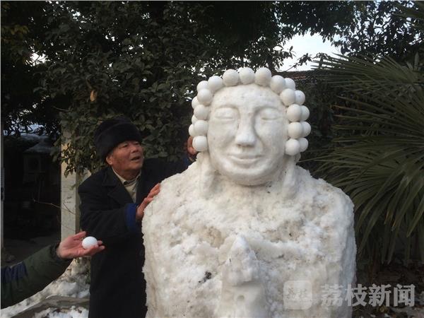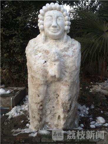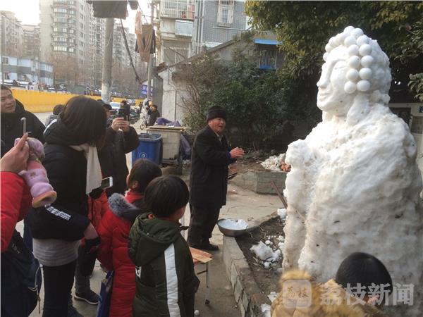 暴雪虽然过去好多天了,但街头仍发现惊喜雪雕。笔者今天(2月4日)下午,路过南京马道街161号附近。看见一位长者在路边花坛空地上堆雪人,惟妙惟肖,栩栩如生。这“尊”雪人似外国人雕塑,也似乎像佛门神像,面部慈祥、比例协调,如果没有一定的绘画或雕刻功底还真对不出来,这给我们带来了生活乐趣。