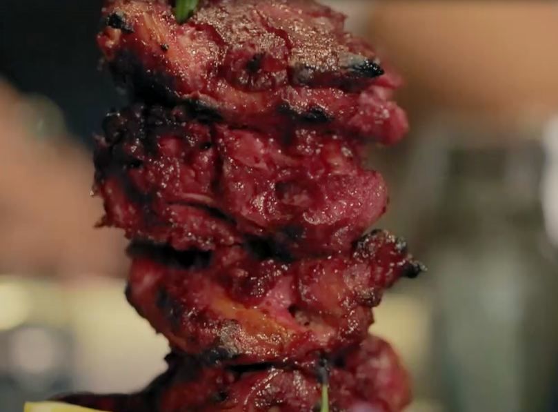 这道石榴鸡选用印度首都新德里的优质鸡肉,用甜菜汁腌渍24小时,红色光泽相当诱人。