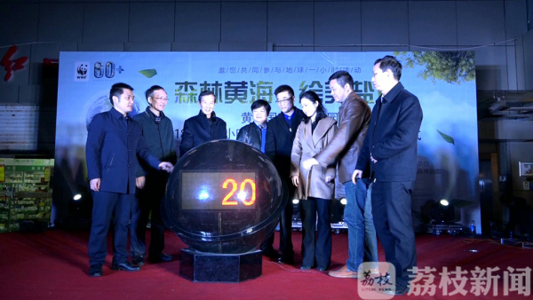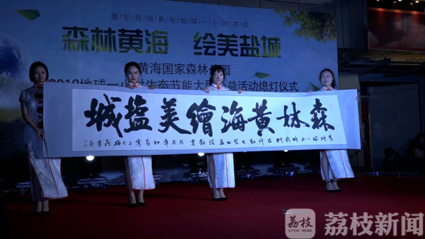 晚上八点半钟,随着主持人的倒计时口令,盐城市相关职能部门领导共同启动了关闭电源球,现场及周边的灯光顿时全部关闭。