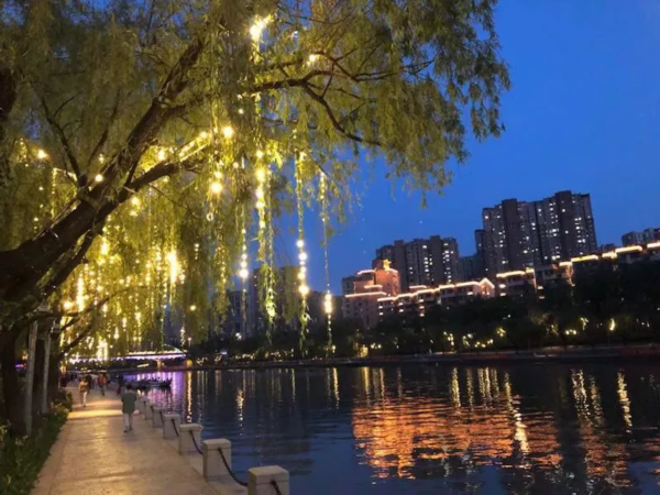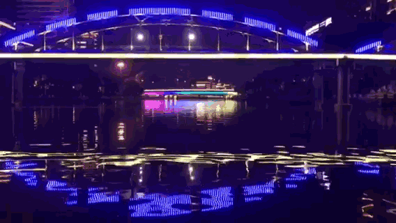 桨声灯影则通过声、光、电多种手法的运用对沿线景观节点、桥梁建筑精雕细琢,串景成珠,呈现出如画中游的如画美景。