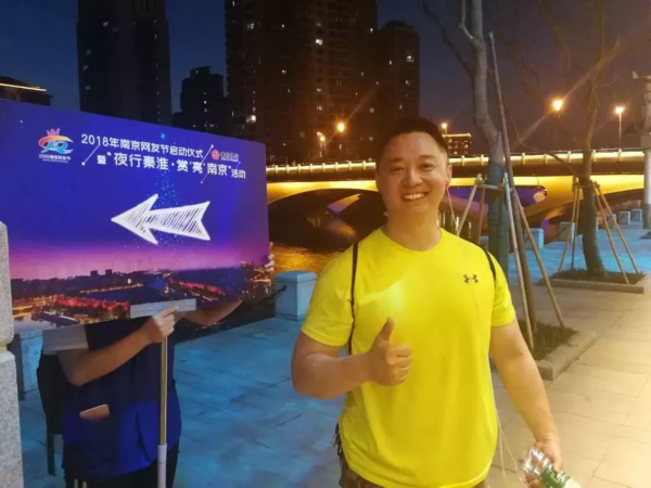 ▲网友刘建明今年已是第三次参加行走秦淮河活动了。