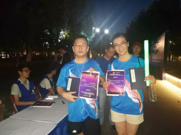 ▲走完全程的网友领取证书。