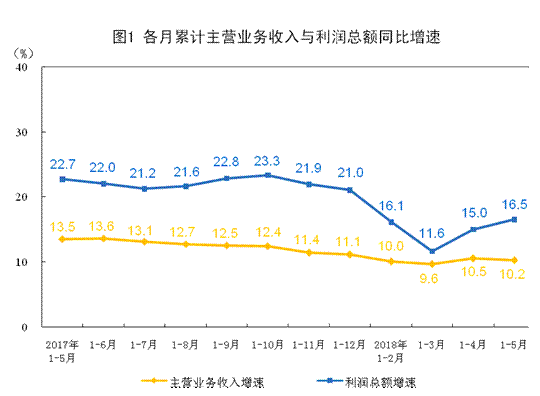 1-5月份,全国规模以上工业企业实现利润总额27298.3亿元,同比增长16.5%,增速比1-4月份加快1.5个百分点。