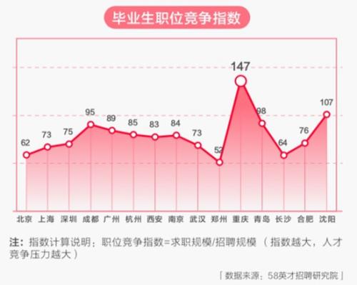 有意思的是,报告还发布了“毕业生职位竞争指数”,指数显示,外地生源最青睐的重庆,也是毕业生职位竞争指数最高的城市,而郑州职位竞争指数相对较小。
