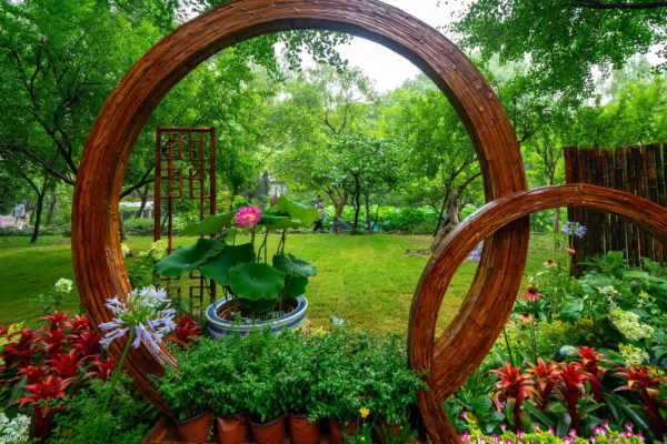 在繁花锦簇,绿植成群中