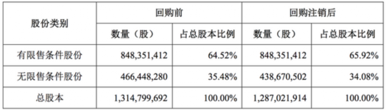 公告称,公司将使用自有资金进行回购股份。本次回购股份的种类为公司发行的A股社会公众股。按回购资金总额上限人民币10亿元、回购股份价格不超过36元/股测算,预计本次回购的股份不低于27,777,778股,占公司目前已发行总股本的比例约为2.11%,占公司目前无限售条件股份的比例约为5.96%。按回购资金总额下限人民币5亿元、回购股份价格不超过36元/股测算,预计本次回购的股份不低于13,888,889股,占公司目前已发行总股本的比例约为1.06%,占公司目前无限售条件股份的比例约为2.98%。