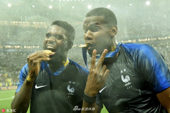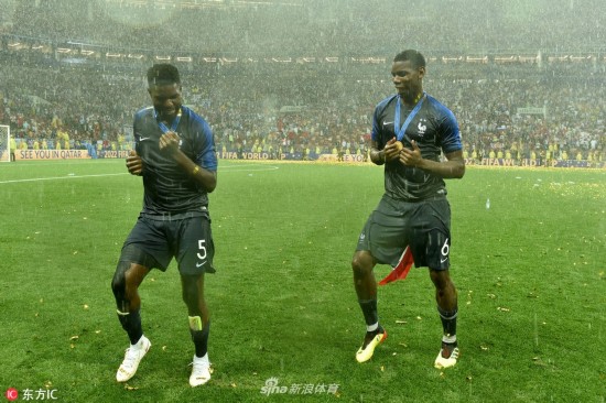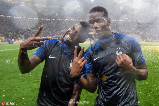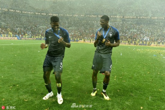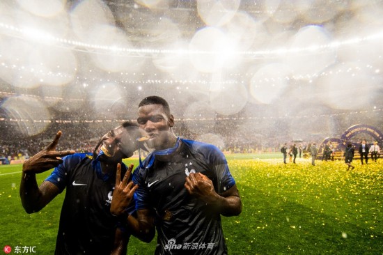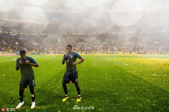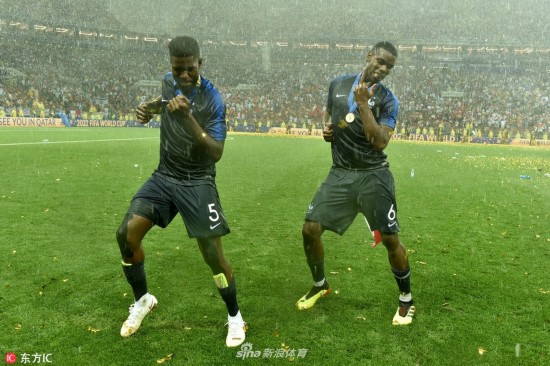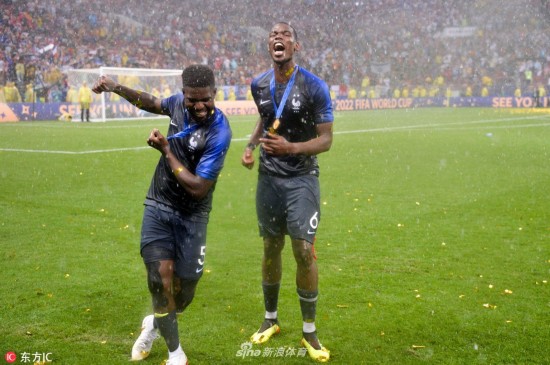 当地时间2018年7月15日,俄罗斯莫斯科,2018世界杯决赛,法国4-2克罗地亚。乌姆蒂蒂、博格巴热舞。