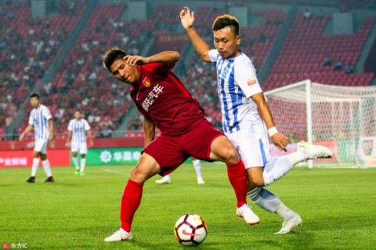 腾讯体育7月28日讯 北京时间19点35分,2018年中超联赛第14轮,河北华夏幸福队坐镇廊坊市体育场,主场迎战广州富力队。第18分钟,扎哈维禁区内推射破门。第35分钟,扎哈维助攻雷纳尔迪尼奥破门。第45分钟,董学升破门扳回一球。上半场,富力队客场2-1领先。