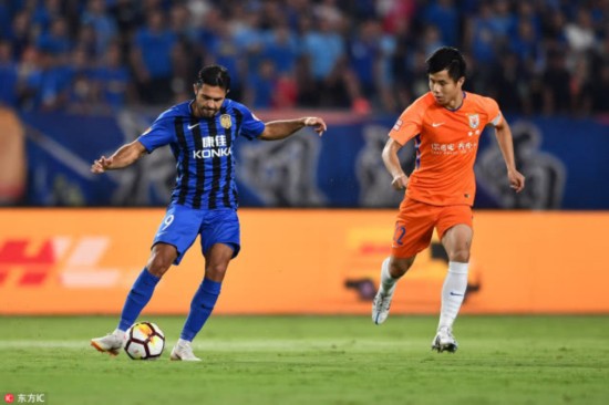 腾讯体育7月28日讯 2018中超第14轮,江苏苏宁主场迎战山东鲁能。上半时比赛,双方打成1-1,第14分钟李昂乌龙送礼,第42分钟埃德尔破门。