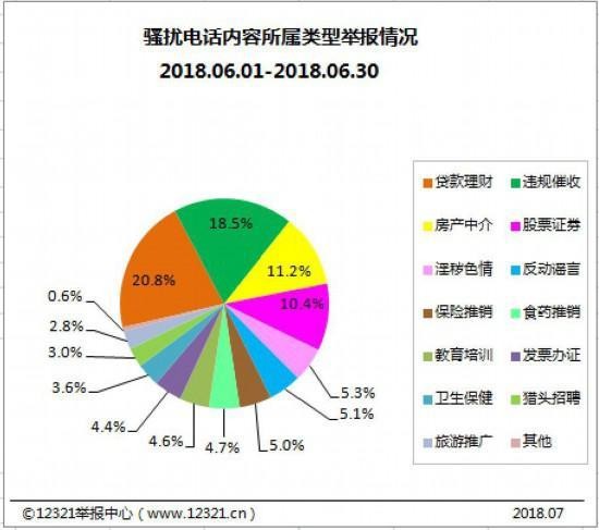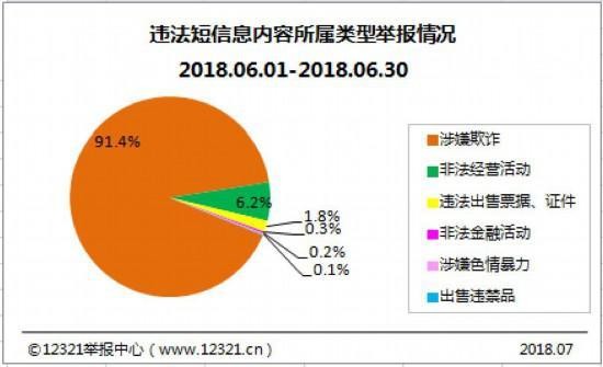 近日,中国互联网协会12321举报中心发布2018年第六期(6月)工作情况月报,月报详细列举了涉嫌违法类短信举报情况和涉嫌骚扰电话举报情况。