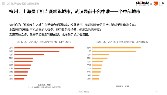 此外,手机点餐用户数TOP10城市中,武汉成为唯一一个上榜的中部城市,分析称与其高校众多,科研创新大受鼓励有关。