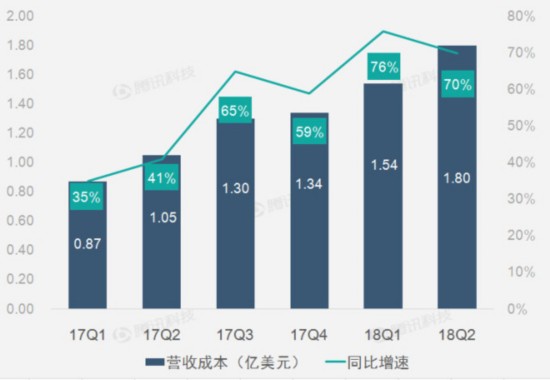 搜狗第二季度营收成本为1.797亿美元,较上年同期增长70%。其中,流量获取成本为1.357亿美元,较上年同期增长33.7%,原因是竞争加剧导致价格上涨推动了流量获取成本的上涨。