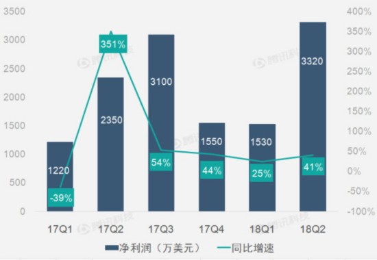 第二季度归属搜狗的净利润为3320万美元,较上年同期增长41%。不按照美国通用会计准则,第二季度归属搜狗的净利润为3820万美元,较上年同期增长58%。