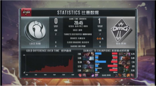 后期:OMG偷大龙但被IG发现,酒桶闪现,克烈大招开维鲁斯和塔姆,OMG中路正面团战以0换3,并且直上高地。OMG再次团战取得胜利,直接推倒基地,赢得第一局比赛的胜利。
