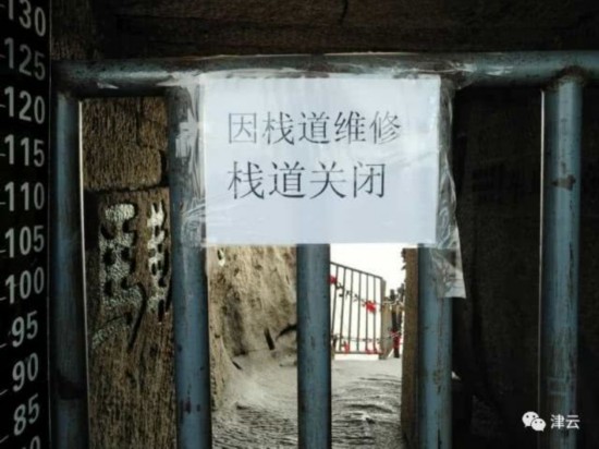 在长空栈道入口,贴着醒目的因维修暂停开放的通知,几位维修工人刚刚检修完毕,他们告诉记者只是例行维护。此外津云新闻记者也从华山景区管委会获悉,目前长空栈道还处于封闭状态,何时恢复开放还没有明确计划。