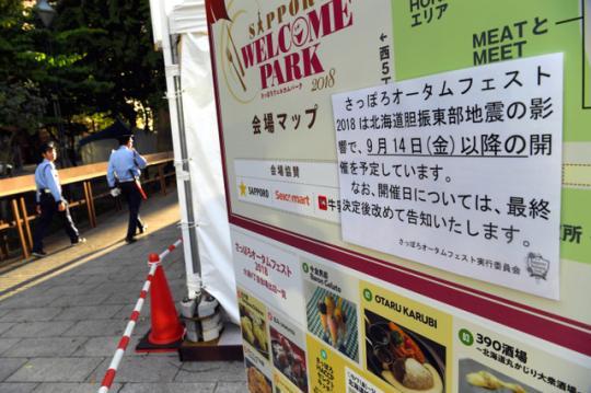8日,札幌市内的许多旅馆出现了很多空房间。同时,由于食材、床单、毛巾等物资不足,许多旅馆也不得不拒绝了新的客房预订。札幌市的大通公园原计划于7日举行一场大型美食活动。该活动往年约有200万人参加,但今年受地震影响不得不延期举行。主办方表示,“现在我们需要节约电力,虽然很遗憾,但活动只能延期”。