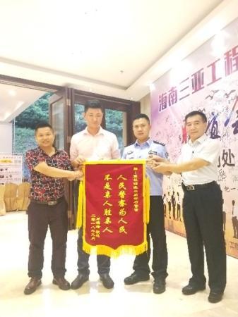 “人民警察为人民,不是亲人胜亲人。”9月8日晚,海南三亚工程人交流联谊会上,当事人周先生把这幅锦旗送到三亚市公安局吉阳分局荔枝沟派出所民警、路管员钟书的手中。