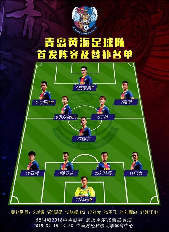 青岛黄海队首发: