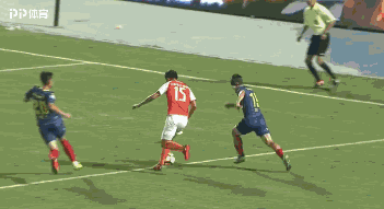 下半场易边再战,第50分钟,青岛黄海队打到对手门前,第一点被解围出禁区,32号杨宇在禁区外一脚落叶球,皮球稍稍高出门楣。
