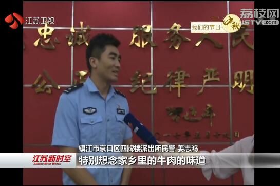 镇江市京口区四牌楼派出所民警姜志鸿:“呼伦贝尔草原和我们的大兴安岭,我就出生和生长在那个地方。特别想念家乡里的牛肉的味道,尤其是自己亲人,自己的母亲、自己的奶奶,做的牛肉特别好吃。”