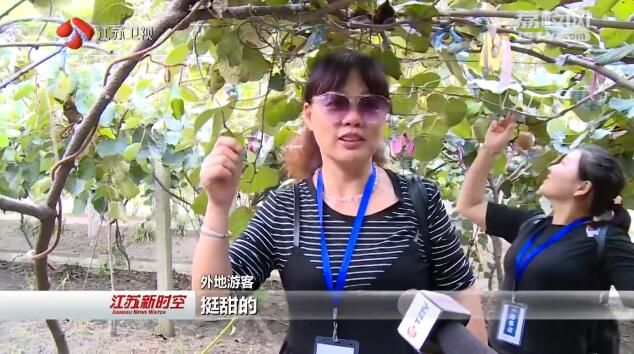 外地游客:“感觉这个猕猴桃口味很不错,很甜的。一边观赏,一边还能尝尝味道。”