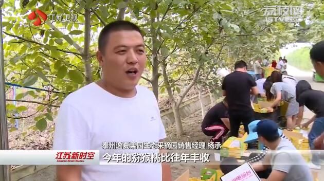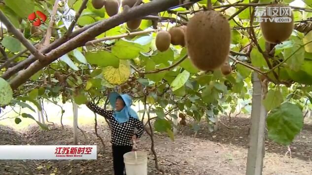 泰州逸夏果园生态采摘园销售经理杨承:“今年的猕猴桃比往年丰收,1亩地增长了1000多斤左右,能够赶个好的价钱的。”