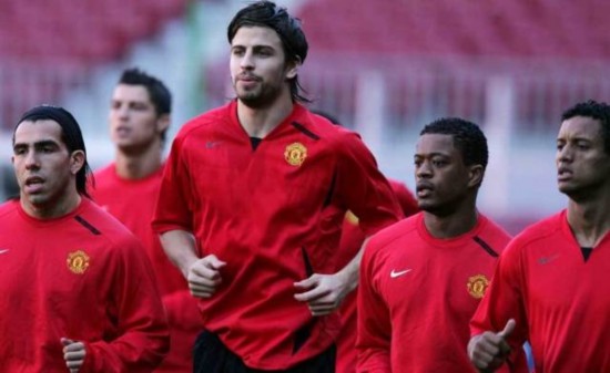 皮克在2004年夏天加盟曼联,当时他只有17岁,并在2008年重返巴萨。而埃弗拉则在2006年加盟曼联,并且一直效力到2014年才离队,为此,皮克和埃弗拉在2006-2008年期间曾是队友。