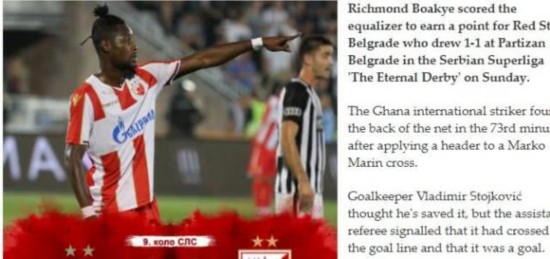 博阿基耶上个月被苏宁租借去了塞超球队贝尔格莱德红星,而在本轮塞超联赛当中,博阿基耶帮助红星客场战平德比对手游击队,而打进扳平球的正是他本人。土耳其媒体称,加拉塔萨雷对博阿基耶已经产生了浓厚的兴趣,他们派出的球探现场观看了红星与游击队的德比战,而博阿基耶在比赛中的强势发挥,无疑会给加拉塔萨雷留下更深刻的印象。