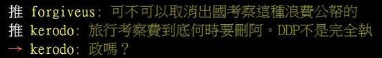 有不少网友讽刺,“可不可以取消出境考察这种浪费公币的?”“旅行考察费到底何时删啊,民进党不是‘完全执政’吗?”