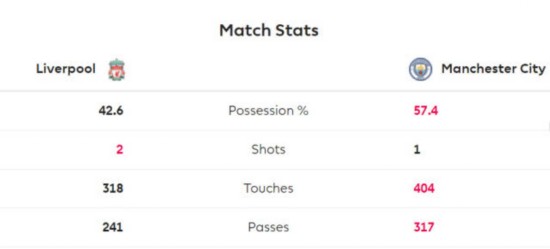 腾讯体育讯 利物浦与曼城,英超两支最具攻击力的球队在安菲尔德球场上演“榜首大战”,两队球员身价相加达20亿欧元。然而半场比赛过后,红蓝两大豪门却联袂交出3射0正的答卷,熬夜看球的中国球迷对此难免感到失望。