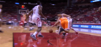 这一幕发生在首节比赛还剩下3分10秒左右的时候。当时,斯科拉在篮筐的右侧错位背身单打哈登,在运球找对抗被哈登掏球破坏后,斯科拉扑倒在地板上去抢球,就在这个过程中,周琦也准备抢球,受伤的一幕就这样出现了。