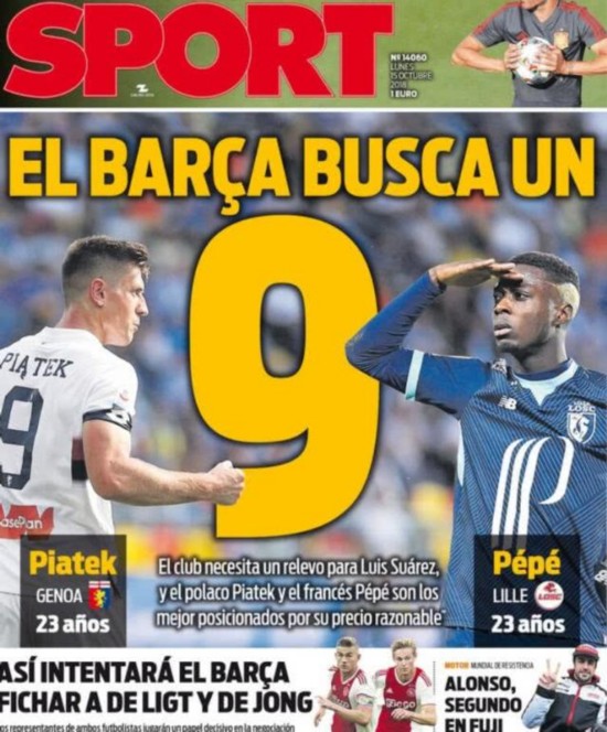 巴萨引进前锋的原则除了能力,年轻也是他们看重的重要条件。虽然巴萨阵中有本土青训穆尼尔,但是巴萨仍然希望能够从其他联赛补强得分能力强的射手。今天出版的《每日体育报》头版上,两名95后新星就被这家巴塞罗那当地媒体视作苏亚雷斯的接班人。