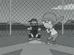 在《辛普森一家》中,主人公的儿子巴特有一个不善运动的“书呆子”朋友米尔豪斯。在剧情当中,米尔豪斯成为了搞笑的谐星:在击打棒球时,他的能力就像是下面的动图这样“令人感动”。