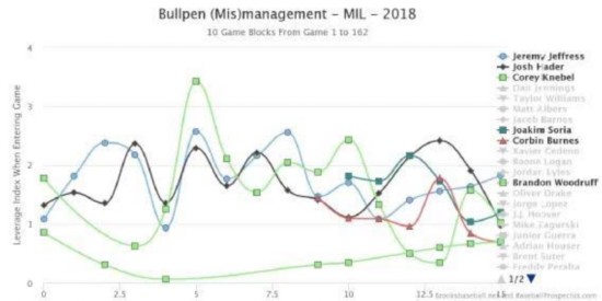 除了约什-哈德(Josh Hader)之外 - 他只是从“相当不错的后援投手”进化成“可以说是今年联盟中最好的后援投手”,按照后援投手的标准来说,这样的发展路径不算是啥大新闻 - 其余在系列赛中出战的坚不可摧的后援投手,很可能连参加这个系列赛的门都摸不到。非常有可能洛基在季后赛中面对的是另外一个牛棚组合。也就是表现更糟糕的一个(他们不管发挥多好,都不太可能再达到这个系列赛中的水准)